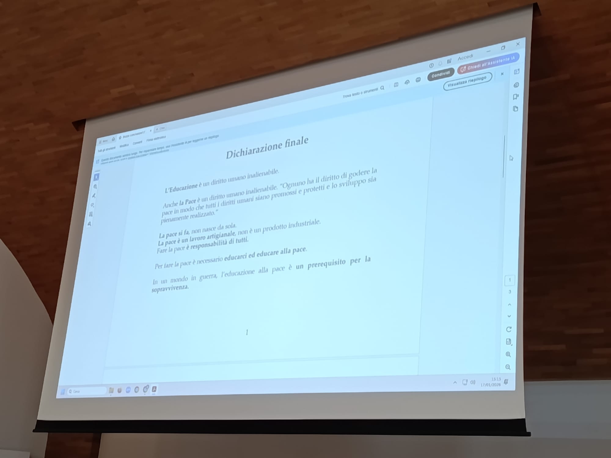 La Conferenza Nazionale delle Scuole di Pace, che si è svolta il 16 e 17 gennaio 2026 presso la Sapienza Università di Roma, rappresenta una tappa significativa di un percorso, avviato nel 2023 ad Assisi, che vede scuole, università, enti locali, mondo della ricerca e organizzazioni della società civile impegnate nella trasformazione, che si va facendo sempre più urgente, della cultura della guerra in cultura della pace.